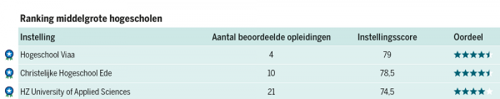 De CHE, die de afgelopen 7 jaar als eerste scoorde, raakt de beste positie als middelgrote hogeschool kwijt aan de Hogeschool Viaa met een nipt verschil. De twee christelijke hogescholen scoren steevast hoog in de ranglijst van middelgrote hogescholen.